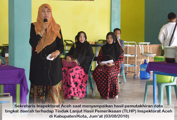 Karang Baru – Pemerintah Kabupaten Aceh Tamiang berhasil meraih peringkat kedua penyelesaian Tindak Lanjut Hasil Pemeriksaan (TLHP) Inspektorat Aceh. Hal tersebut disampaikan oleh Inspektur Aceh yang diwakili oleh Sekretaris Inspektorat Aceh Busra Usman dalam penutupan acara pemutakhiran data tindak lanjut hasil pemeriksaan Inspektorat Aceh di Kabupaten/Kota se-Aceh, Jum’at (03/08/2018). Acara yang berlangsung secara sederhana di Cafe Putro Ijoe Danau Aneuk Laot Sabang tersebut dihadiri oleh Sekretaris Daerah Kota Sabang Zakaria dan para Inspektur serta pejabat dilingkungan Inspektorat Aceh dan Inspektorat Kabupaten/Kota se-Aceh.